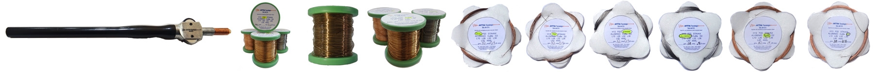 - Disponemos de hilo de material en rollos de 10 metros y por bobina de 150 grs, con diámetros de 0.1, 0.2, 0.3, 0.4, 0.5, 0.6 mm. Varilla de 1/16” y 1/32”